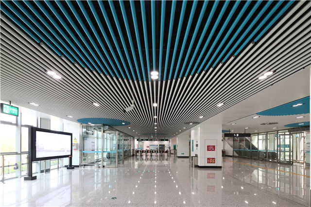 項目堅持人性化設計和施工。全線高架線路布設與周邊用地性質結合緊密,車站主體采用“橋建”組合式和“橋建”分離式設計,路側布置附屬建筑用房,科學選形,降低了對城市景觀的影響。功能分區合理、布局緊湊,“一線一景”的裝修風格簡約、明快,站廳設置自采暖系統、防寒罩棚,站臺設置防滑地面,乘車環境舒適便利。施工中采用30余項綠色施工技術,堅持綠色施工、環保施工。