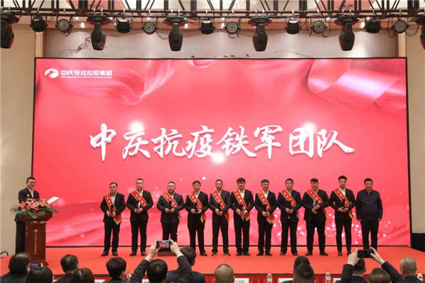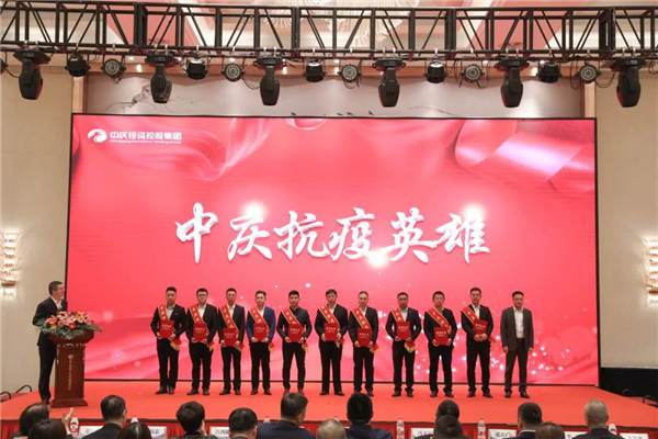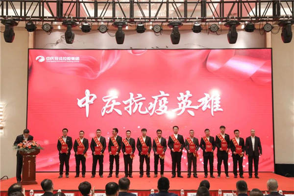 會議首先對2021年參加吉林省通化市、公主嶺市抗疫援建項目的160名中慶鐵軍、十支團隊進行表彰,分別授予“中慶抗疫英雄”“中慶抗疫鐵軍團隊”榮譽稱號,并頒發抗疫英雄獎章、榮譽證書、獎杯,抗疫英雄詮釋著中慶鐵軍精神,激勵著所有中慶人勇于擔當,繼續拼搏。