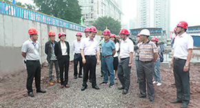 9月27日,重慶市江北區區委書記杜和平帶領區委副書記王和平、區委常委范立新、區政府副區長王志勇等一行領導,對中慶建設重慶分公司承建的江北區金源路下穿道立交工程現場進行視察。
